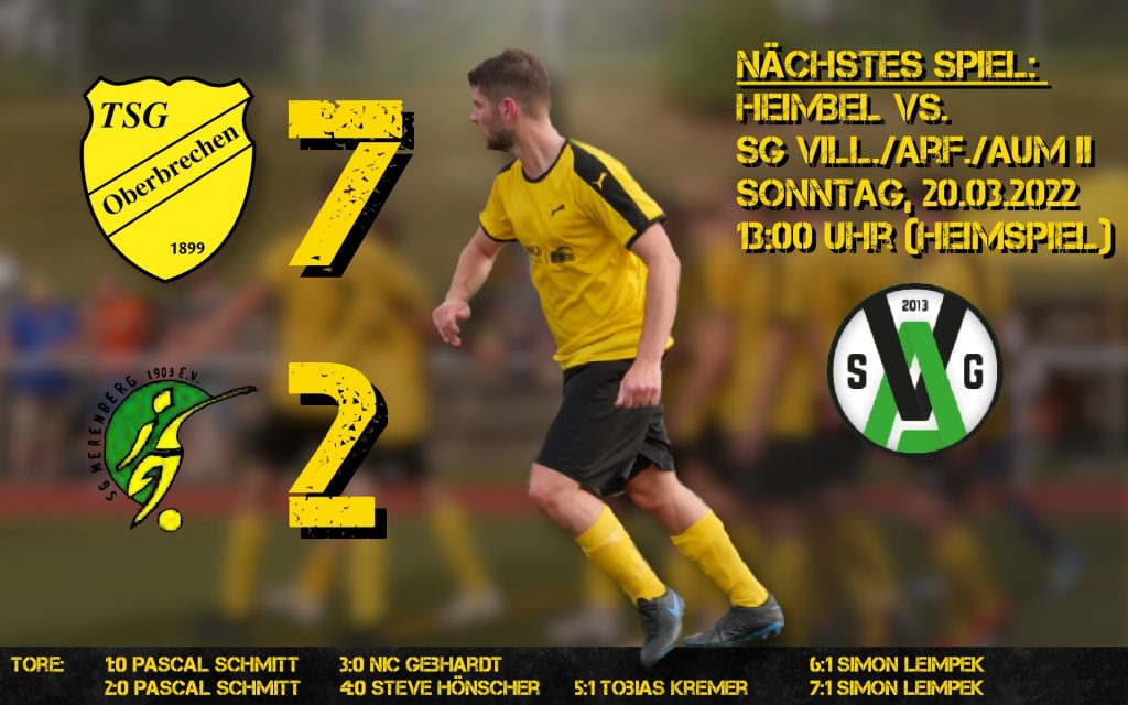 7 Tore der Heimelf gab es nun zum zweiten Mal in Folge auf dem Oberbrecher Sportplatz zu bestaunen! 🤩 Nach einer furiosen ersten Hälfte, nach der es bereits mit 5:0 in die Halbzeitpause ging, setzte sich die Heimbel gegen die Gäste der SG V/A/A mit 7:1 durch und bleibt weiter an der Spitze des Tableaus …