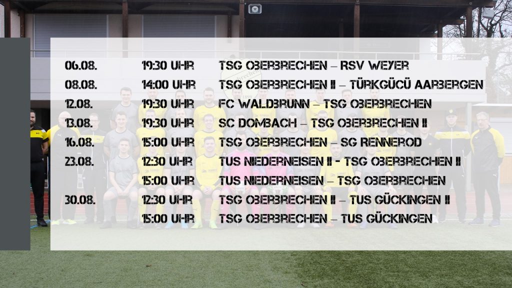 TSG Oberbrechen – RSV Weyer 2:2 (0:1) Nach monatelanger Abstinenz durften die Männer der TSG Oberbrechen am Donnerstagabend den Nachbarn aus Weyer zum Test begrüßen. Der Verbandsligist erwies sich zum Auftakt als echter Hochkaräter, wurde seiner deutlichen Favoritenrolle jedoch nur phasenweise gerecht. Die ersten 15 Minuten des Spiels gestalteten sich ausgeglichen. Während der RSV den …