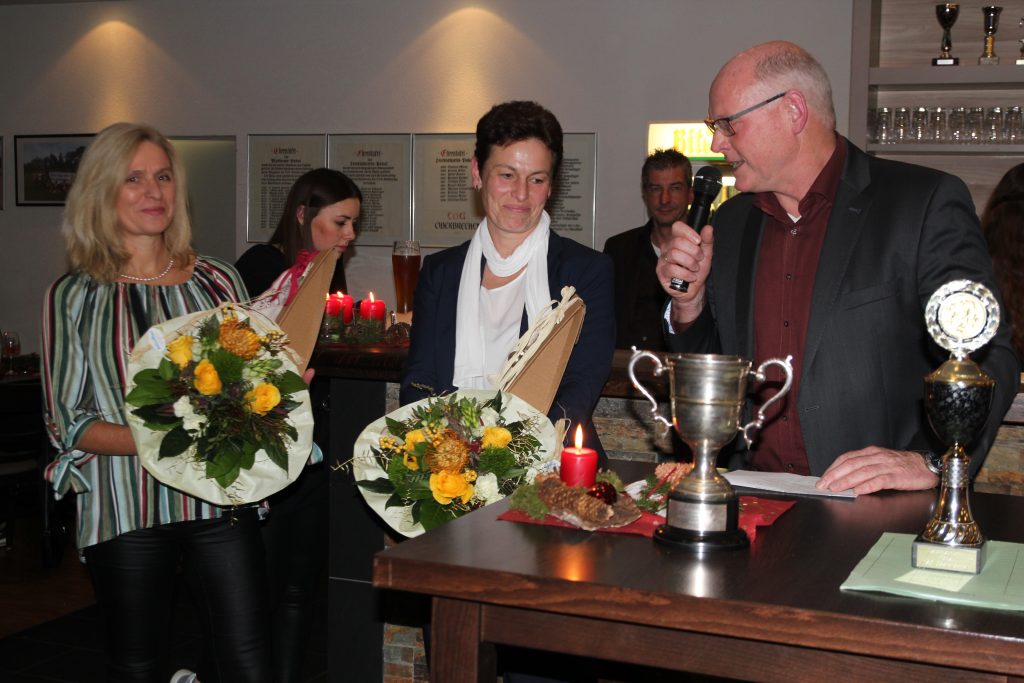 Im Rahmen der diesjährigen Weihnachtsfeier wurden drei langjährige Vereinsmitglieder aus ihrer Position als Übungsleiter/-in verabschiedet. Volker Graw fungierte 20 Jahre mit Erfolg als Volleyballtrainer. Nach dieser langen Zeit überreichten ihm seine ehemaligen Spielerinnen eine gelungene Bildercollage, auf der viele Erinnerungen aus den letzten beiden Jahrzehnten nochmal ins Leben gerufen wurden. Auf zusammen über 50 Jahre …